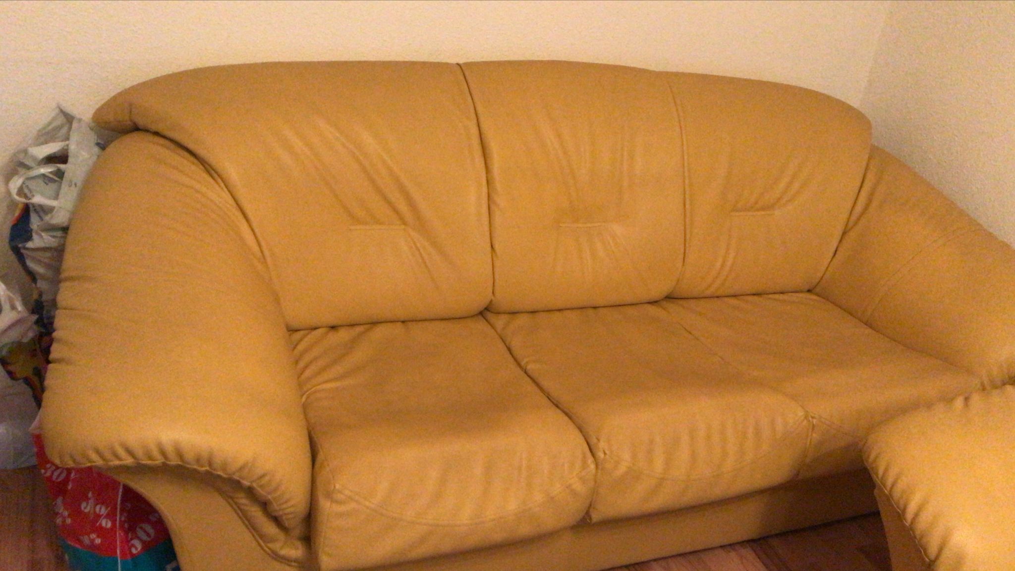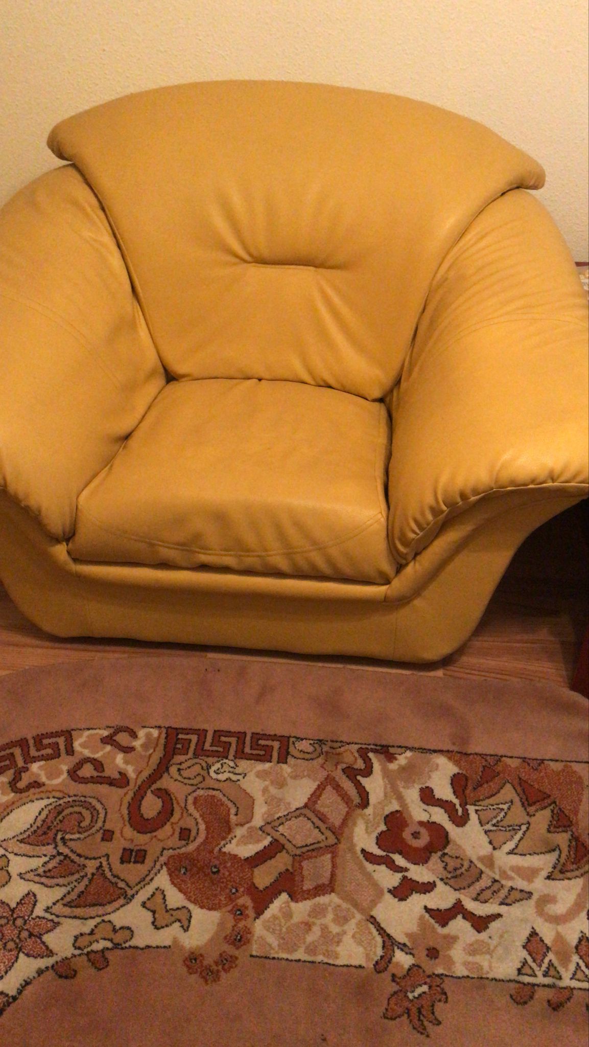 Set format din canapea extensibila si doua fotolii extensibile, toate din piele ecologica.